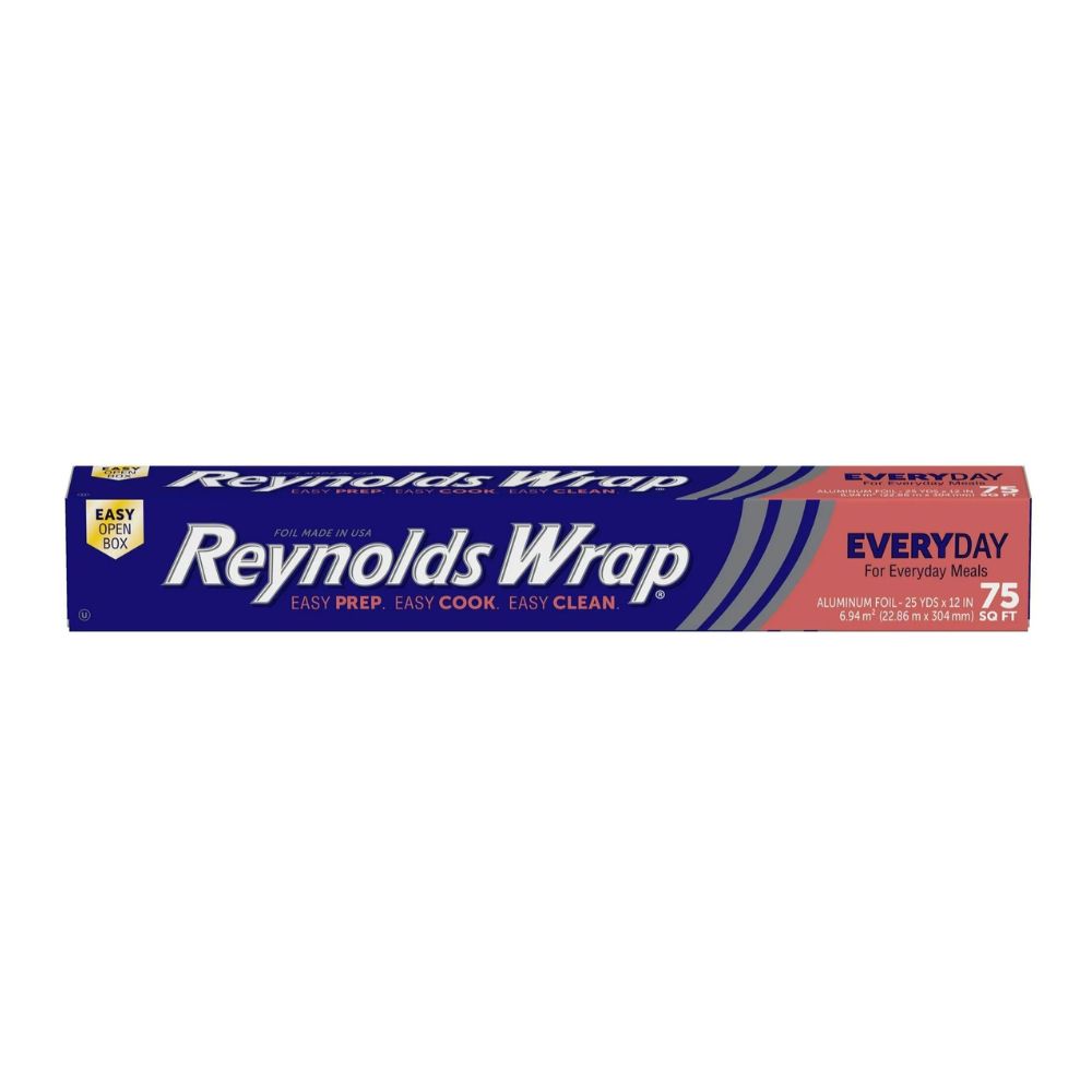 Brand: Reynolds Wrap Manufacturer: REYNOLDS CONSUMER PRODUCTS INC. Assembled Product Dimensions: 1.75 x 12.44 x 1.75 Inches Material: ZPRI Size: 75 sq. ft Food Wrap Type: Aluminum Foils UPC: 010900000154, 096619259960, 010900000154, 096619251742 096619433124, 010900080804, 096619261710