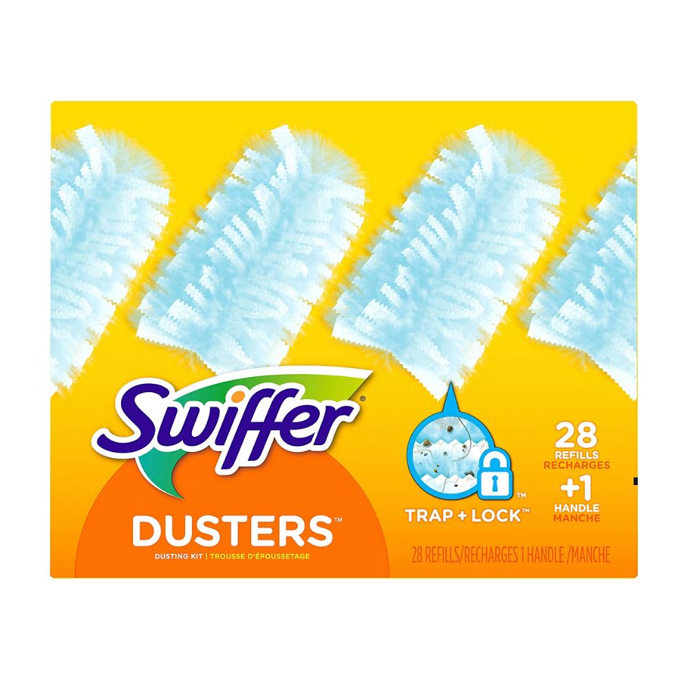 Specially coated fibers grab onto dust and don't let goUniquely designed to trap and lock dust from even the tight spaces in your homeUse with Swiffer duster handlesGreat for dusting electronics, furniture, knick-knacks in your home or office, blinds, ceiling fans and even your car interiorIncludes duster handle and 28 duster refills